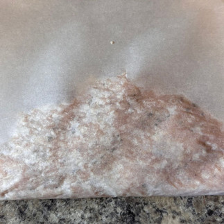 Lift the parchment paper and fold the meat circle in half. This is the hardest part, as it can be sticky. I press it into the bottom to help get it to stick.